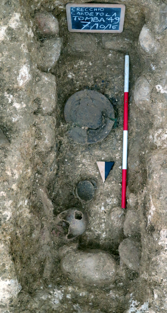 Numerose sono le testimonianze di epoca preromana venute alla luce nel territorio di Crecchio a partire dal 1844, quando fu scoperta la stele arcaica conservata a Napoli (Figura 1). Il borgo attuale sorge su un antico insediamento, mentre sull’altro lato della valle del fiume Arielli c’è uno dei siti più significativi: Santa Maria Cardetola (Figura 2).